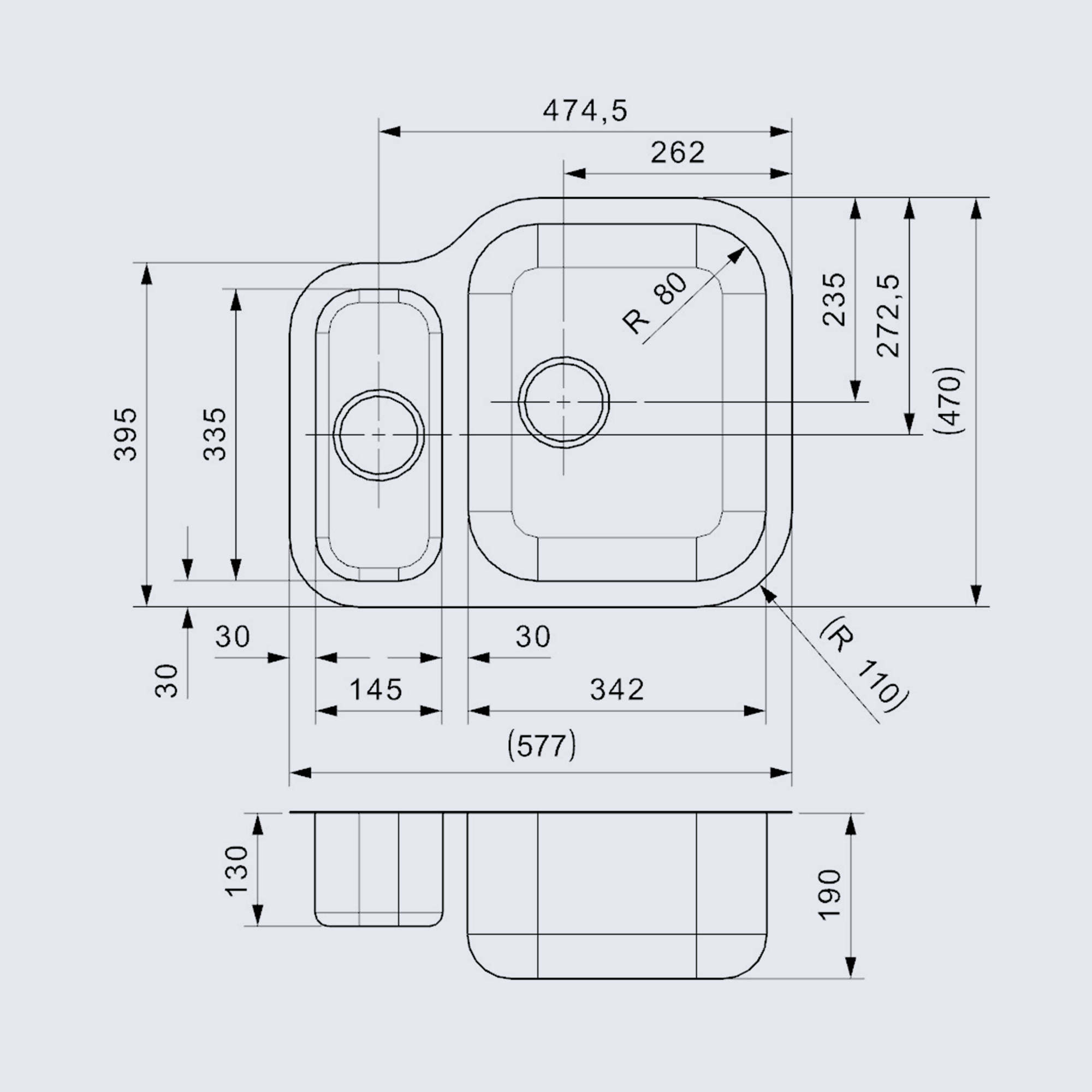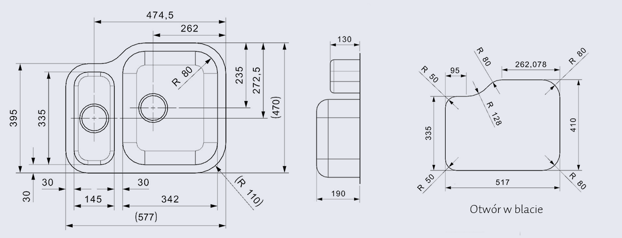 - PROMIEŃ NAROŻNIKÓW: 110 mm i 80 mm wewnętrznego promienia