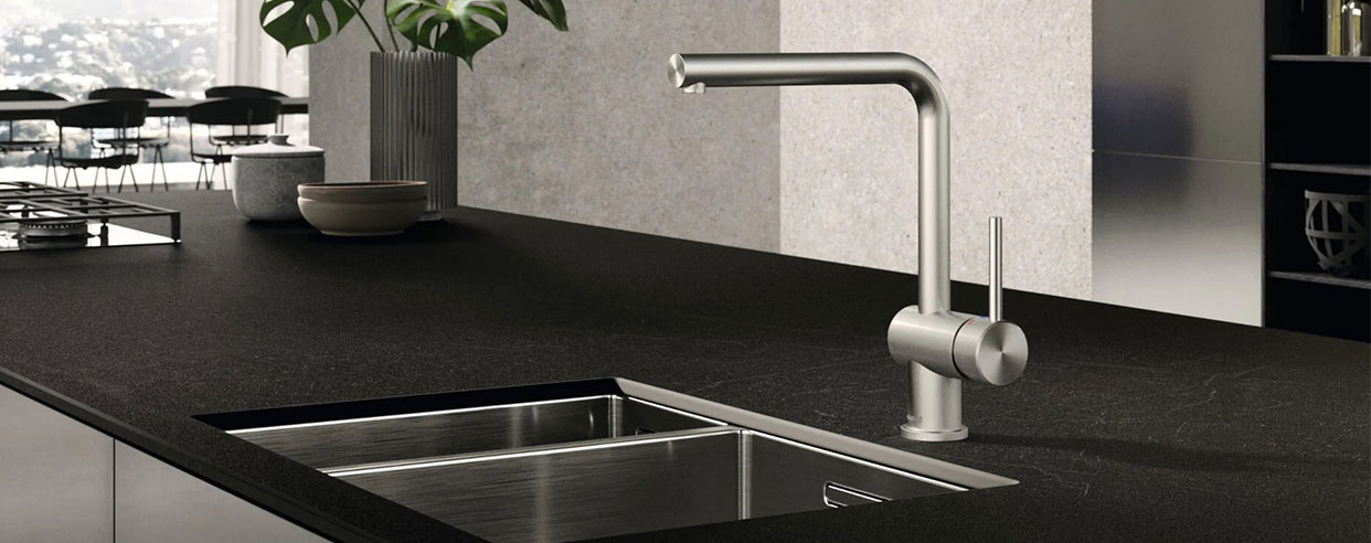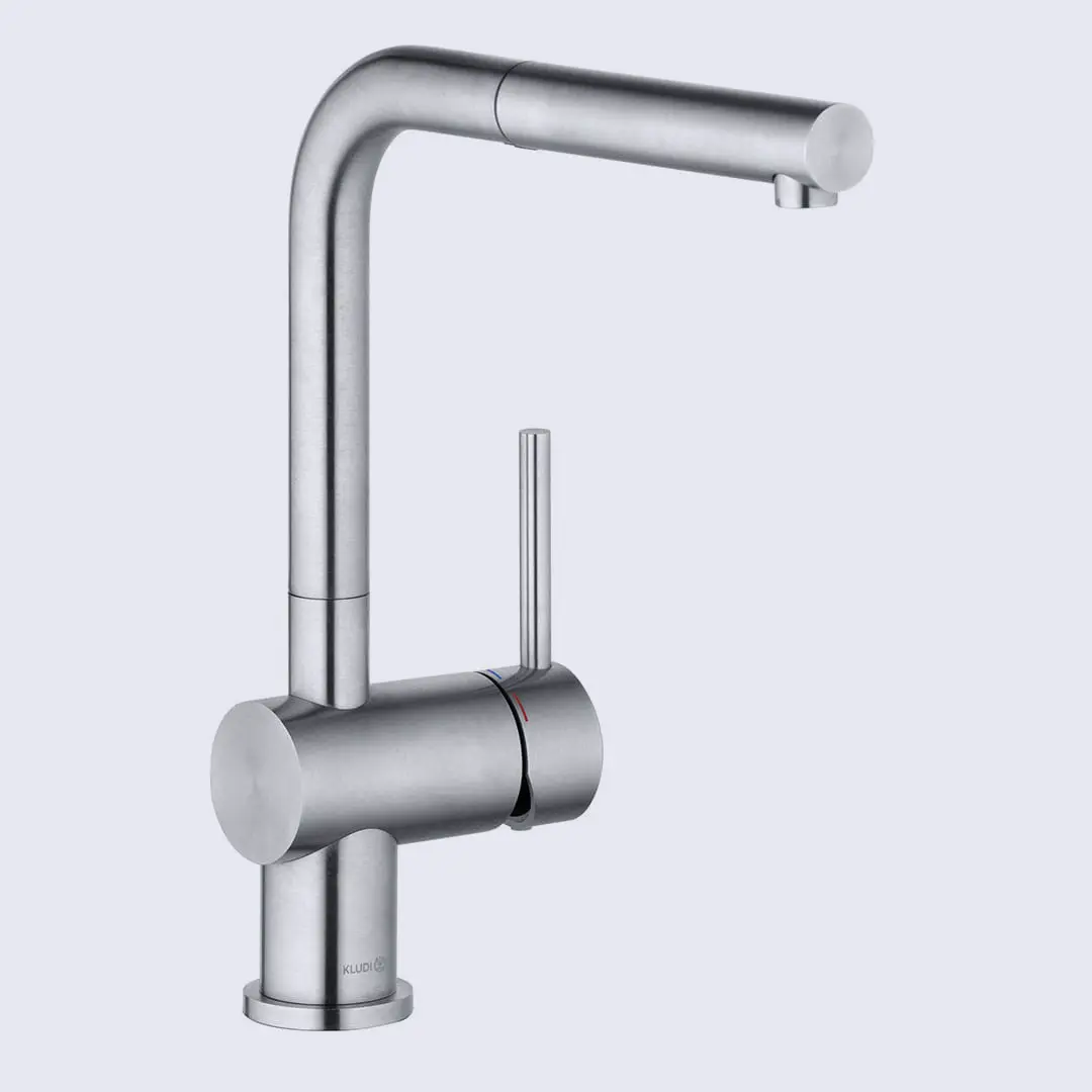 Kuchnia jako wyraz osobistego stylu życia - KLUDI L STEEL jako akcent architektoniczny. Przejrzysty język projektowania, zredukowany do tego, co najważniejsze. Baterie z tej serii to solidna stal szczotkowana promieniowo szczotkowana, która jest bardzo łatwa do czyszczenia. Dzięki wylewce w kształci litety L oraz zredukowanej stylistyce uchwytu to puryzm w najczystszej postaci. Baterie z funkcją EcoPlus dostarczają zimną wodę gdy dźwignia jest w pozycji pionowej - oszczędza to energię. KLUDI L STEEL można zamontować bliżej ściany bez ograniczania zakresu ruchu mieszacza. Zastosowane w serii L STEEL zmodernizowanego mocowanie zapewnia mocne trzymanie się baterii zlewozmywaka czy w przypadku zlewozmywaków podwieszanych, blatu. Nakrętkę można łatwo przykręcić ręcznie, trzy śruby blokują ją na miejscu zapewniając solidny i trwały montaż.