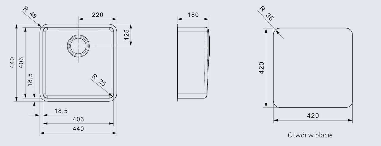| Wymiary zewnętrzne | 440 x 440 mm |