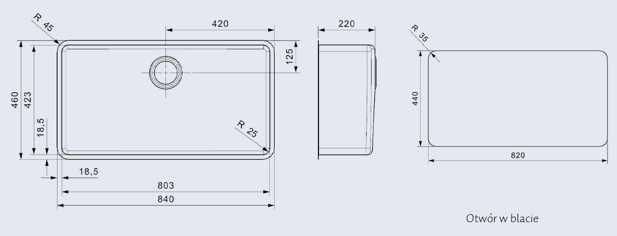 | Wymiary zewnętrzne | 840 x 460 mm |