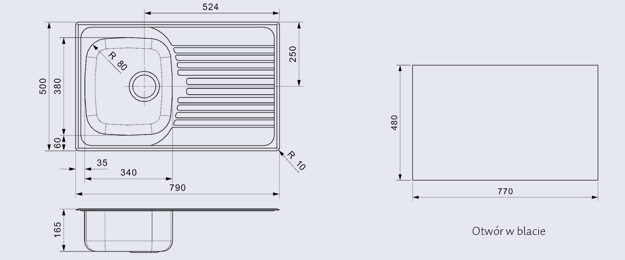 | Wymiary zewnętrzne | 790 x 500 mm |